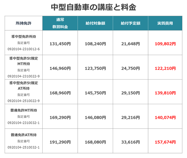 ②中型第一種免許取得コース(準中型免許5t限定MT所持)