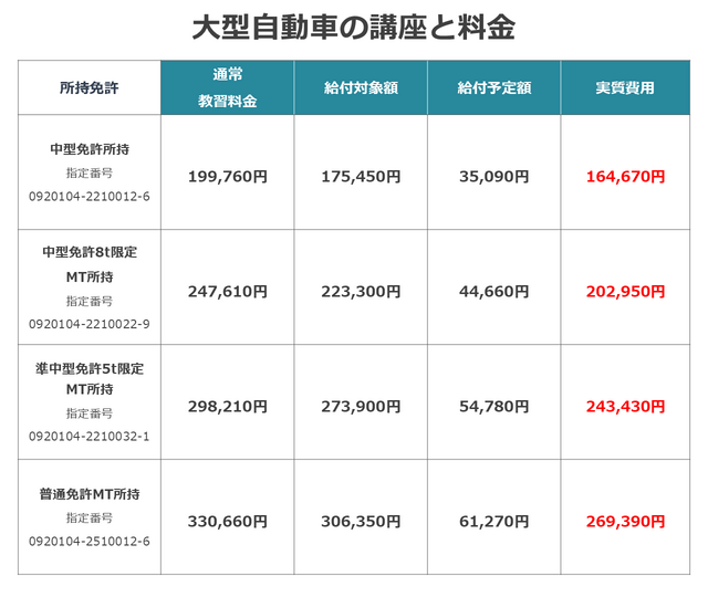 ②大型第一種免許取得コース(中型免許8t限定MT所持)