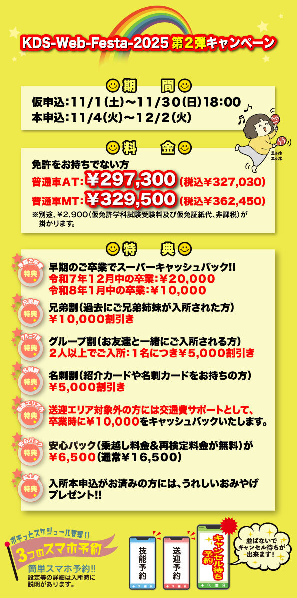 普通車免許取得がとってもお得になる「KDS-Web-Festa-2025」のご案内です。